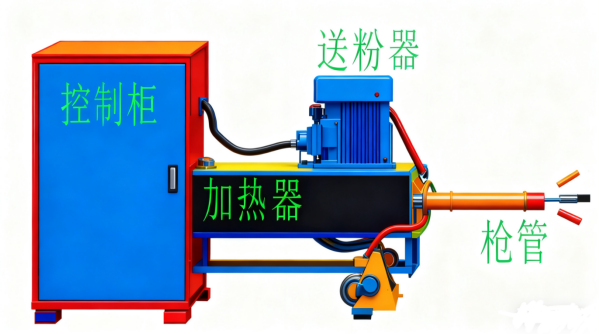 33包括主控制柜和操作控制显示屏、主加热器、喷枪和喷嘴、送粉器、冷水机、管气电路等组成。