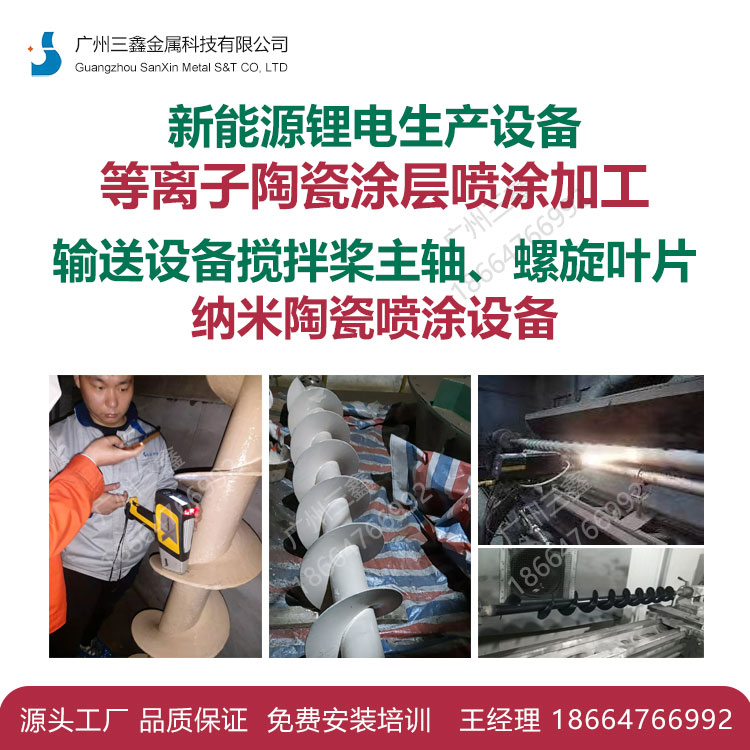 广州三鑫公司采用美国miller等离子熔覆设备和技术,可现场施工承按熔覆纳米陶瓷涂层,适用于锂电新能源行业料仓,螺杆 螺带混 输送系统